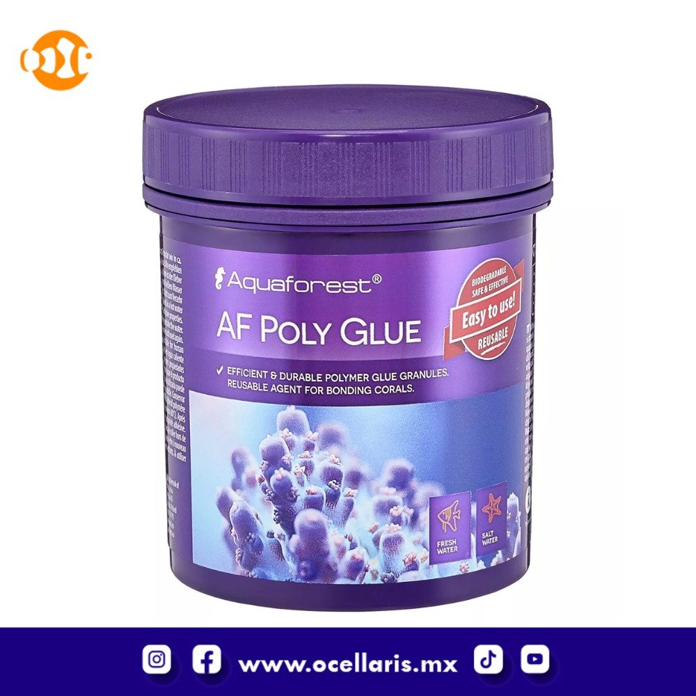 En un acuario de agua salada, AF Poly Glue es esencial para unir fragmentos de coral a rocas o tapones. Con su ayuda, colocarás los corales de forma rápida y permanente en un lugar seleccionado. El pegamento no contamina el agua y es seguro para los animales acuáticos. Se puede utilizar con éxito para unir todo tipo de corales.