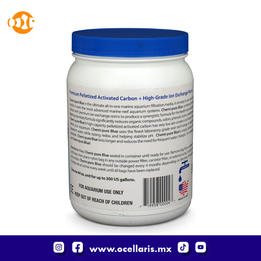 Al combinar carbón peletizado de primera calidad con resinas de intercambio iónico especializadas y colocarlas dentro de una bolsa de medios de nailon de malla fina, Chemi-Pure Blue ofrece una forma conveniente y efectiva para eliminar rápidamente los compuestos orgánicos y mejorar la claridad del agua en su acuario.