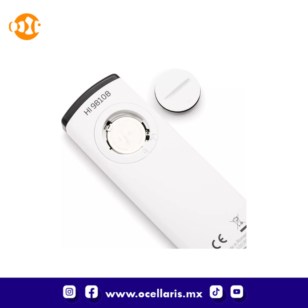 El medidor de bolsillo HI98108 incluye una pantalla LCD grande multi nivel que muestra las lecturas de pH y temperatura de forma simultánea. Las lecturas de pH se muestran con una resolución de 0.01 pH y con una exactitud de ±0.10 pH. El intervalo de pH del HI98108 es de 0.00 a 14.00 pH. Incluye un sensor de temperatura que proporciona una compensación rápida y automática de las mediciones de pH. La temperatura se puede seleccionar en ℃ o ℉. La pantalla LCD tiene indicadores de estabilidad y de calibración. El porcentaje de carga de la batería se muestra en pantalla en el momento del encendido del medidor, informando al usuario de la carga disponible.