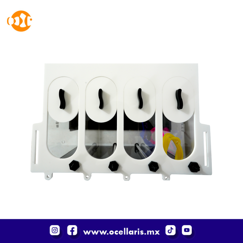El contenedor dosificador Mantis de 6L es un depósito de cuatro compartimentos diseñado para organizar soluciones y mantener ordenada su área de sump.