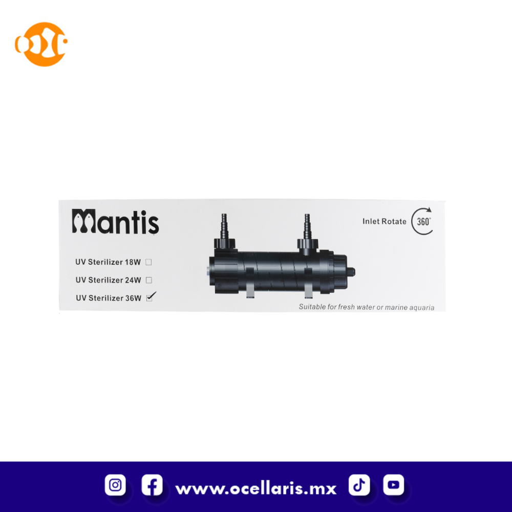 El esterilizador ultravioleta Mantis de 36W elimina algas, parásitos y microorganismos dañinos que flotan libremente en el agua del acuario.