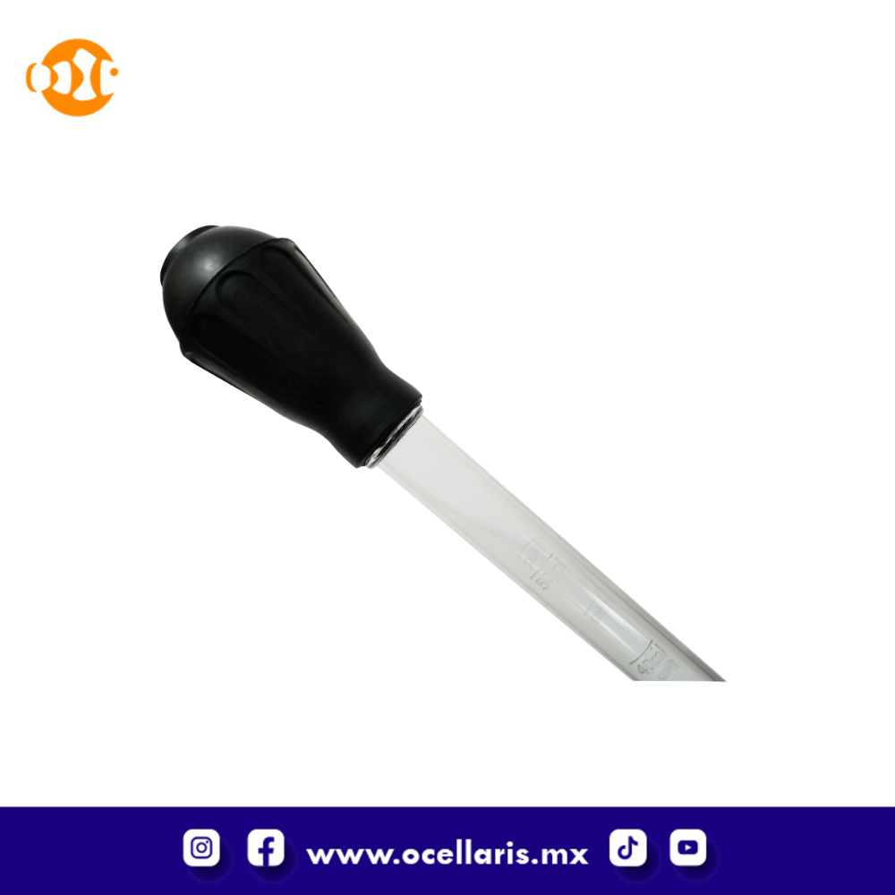 Además, el tubo está echo de un material altamente resistente, lo que lo convierte en una alternativa segura y duradera en comparación con las pipetas tradicionales de vidrio que se rompen con facilidad.