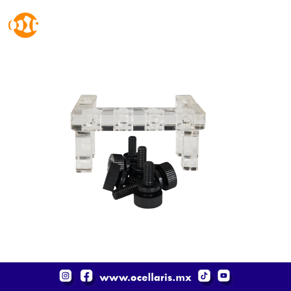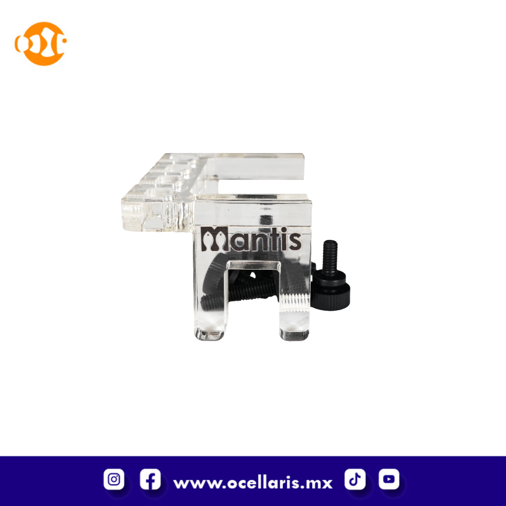 Un soporte Mantis de acrílico bien construido diseñado para sostener las mangueras de cualquier sistema de dosificación en su lugar en el costado del tanque o sump.