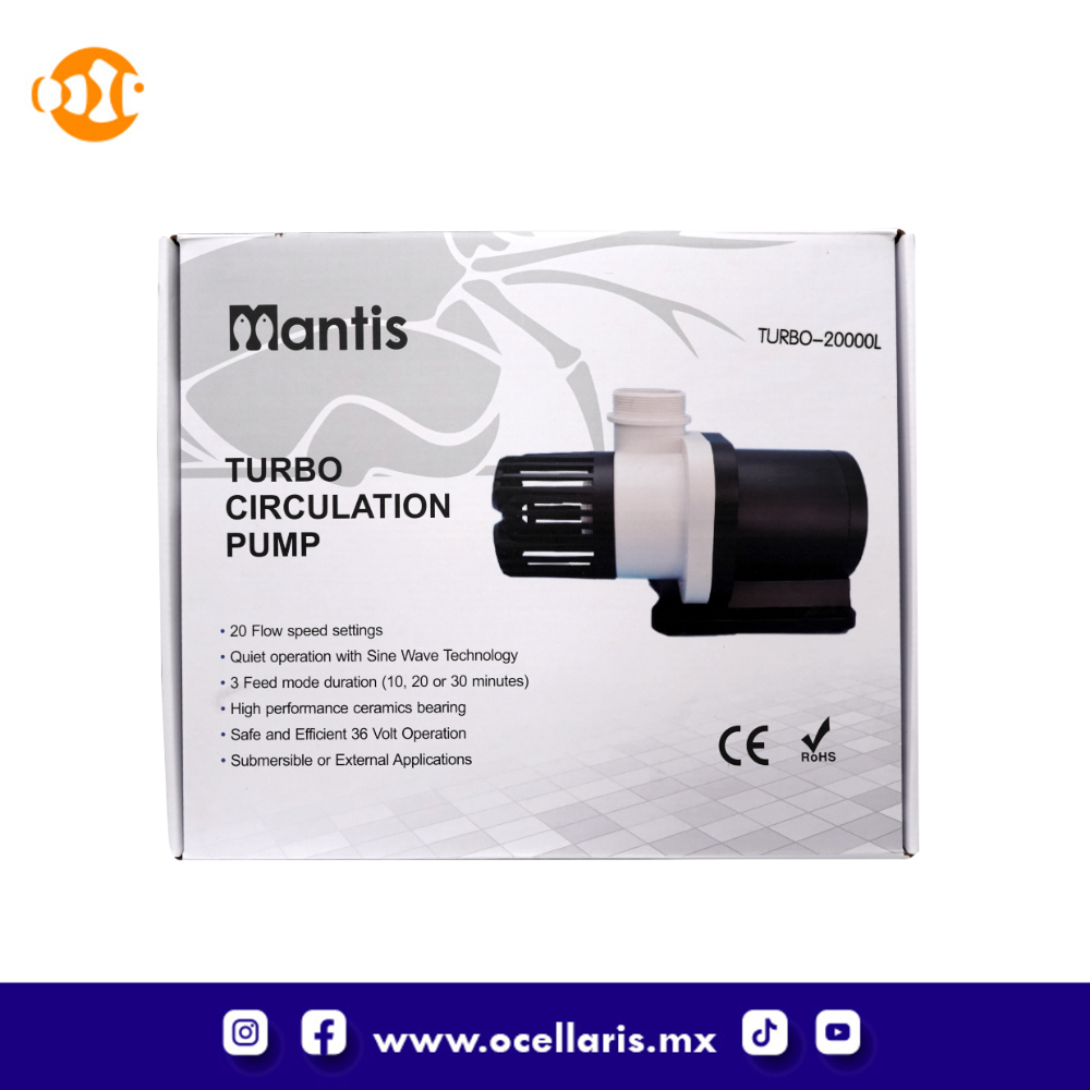 La bomba de retorno Mantis TURBO 20000 es un accesorio de alta calidad y rendimiento diseñado para mantener un flujo constante de agua en tu acuario. Con una capacidad de 20,000 l/h, esta bomba garantiza una circulación eficiente y una oxigenación adecuada para tus peces y corales.