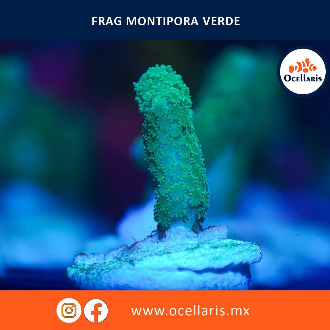 Esta nueva cepa de Montipora Digitata en color verde que viaja por todo el coral