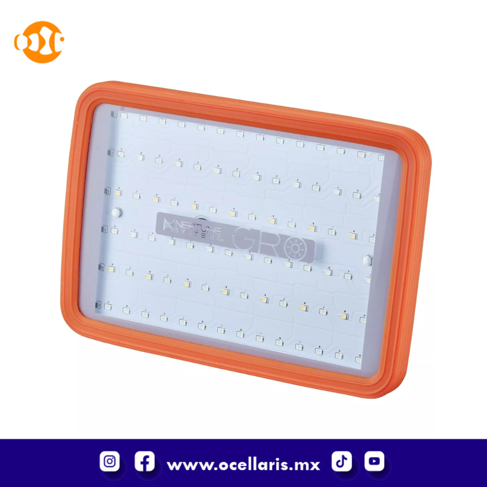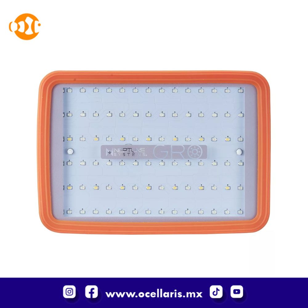 El GRO utiliza toda su potencia para emitir luz en dos longitudes de onda específicas que están optimizadas para el crecimiento de macroalgas. Esto, combinado con su forma rectangular ayuda a que la luz adecuada vaya justo donde la necesitas y minimiza el crecimiento de algas molestas en otras áreas de tu sump debido al derrame de luz.