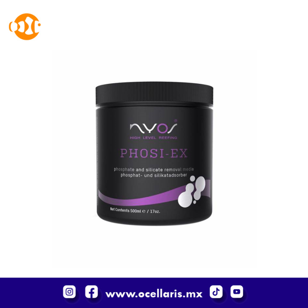 Nyos Phosi-Ex es un medio de filtración adsorbente de silicato y fosfato de alto rendimiento que puede prevenir el crecimiento de algas no deseadas en su acuario sin alterar el pH ni liberar sustancias nocivas en su sistema. Use Phosi-Ex regularmente para mantener el agua cristalina en su acuario de agua salada.