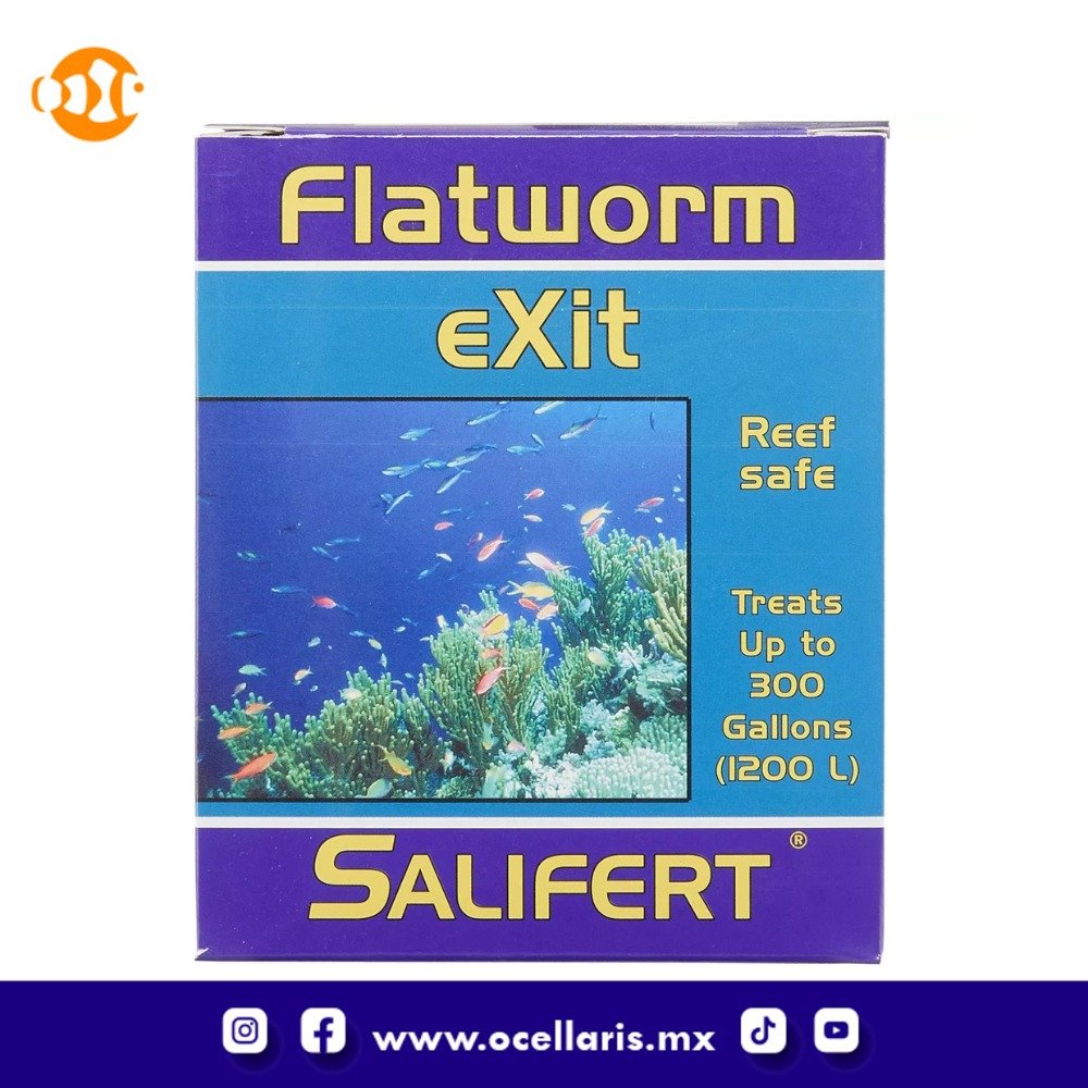 Los gusanos planos pueden consumir corales y generalmente se encuentran cuando se introducen nuevos corales en el tanque. Al utilizar Flatworm Exit es necesario seguir las instrucciones, ya que los gusanos planos pueden producir una toxina en su acuario después del tratamiento. También pueden ser necesarios múltiples tratamientos.