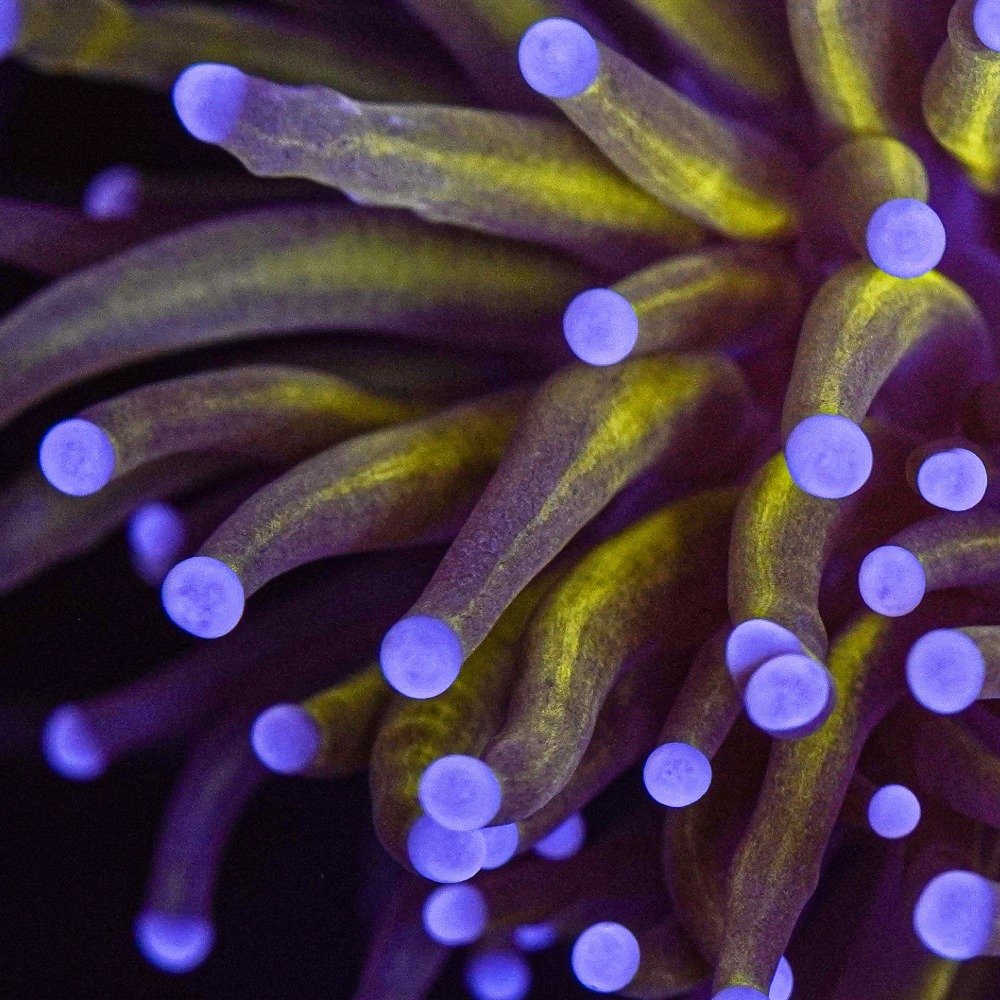 Los Torch, tienen tentáculos que son más finos de diámetro que los normales y que pueden expandir hasta más de 20 cm buscando alimento o agrediendo a otros corales, en la lucha por el espacio y la luz, ya que poseen células urticantes llamadas nematocistos.