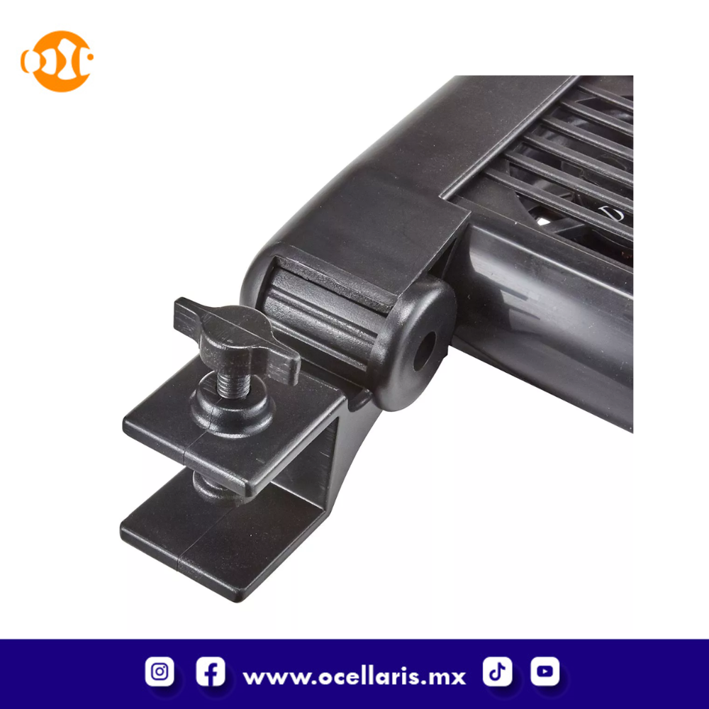 El ventilador de enfriamiento del enfriador de acuario viene con un soporte de montaje ajustable con bisagras que permite colocar el ventilador para soplar aire donde lo necesite.